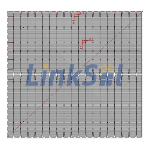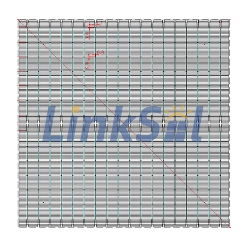 Front (cathode): The front pattern with 18 busbars 11.29 mm Distance of 11.29 mm between two silver busbars